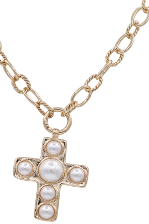 Metal Cream Pearl Cross Chunky Pendant Necklace