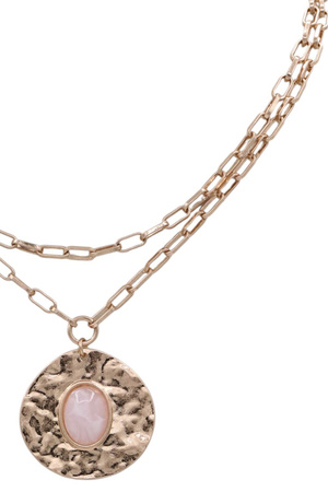 Acrylic Stone Layer Hammer Metal Pendant Necklace