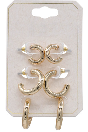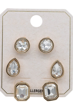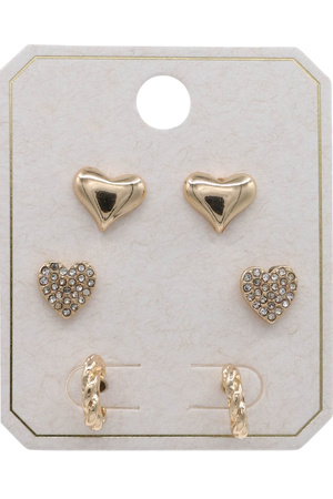 Metal Rhinestone Heart Stud and Hoop Earring Trio