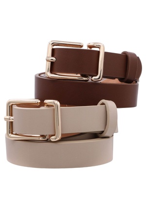 3D D-Loop Rectangle Buckle Faux Leather Duo Belt