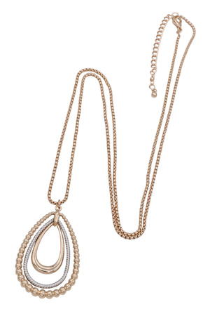 Multi Texture Triple Layer Teardrop Pendant Long Necklace