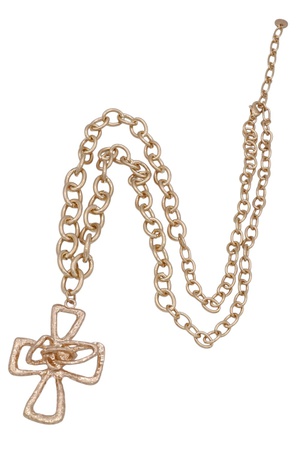 Textured Chunky Cross Charm Long Chain Necklace