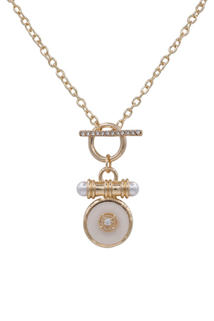 Metal Chain Circular Pendant Rhinestone Bar Toggle Necklace