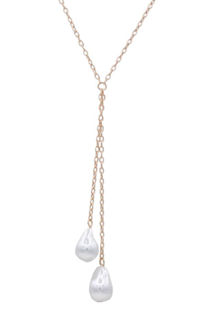 Layered Chain Double Organic Pearl Charm Necklace