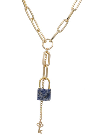 Textured Chain Jewel Pendant Y-Lariat Long Necklace
