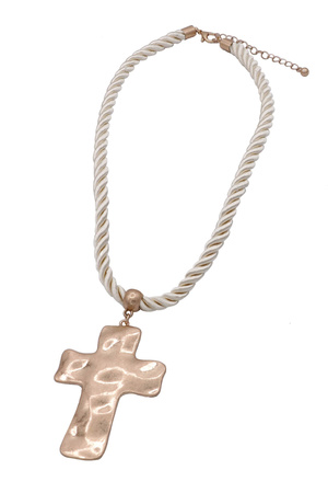 Metal Textured Cross Pendant Necklace