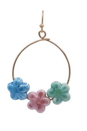 Floral Painted Ceramic Charm Glass Bead Bracelet