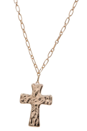 Rope Hammered Chunky Cross Pendant Necklace