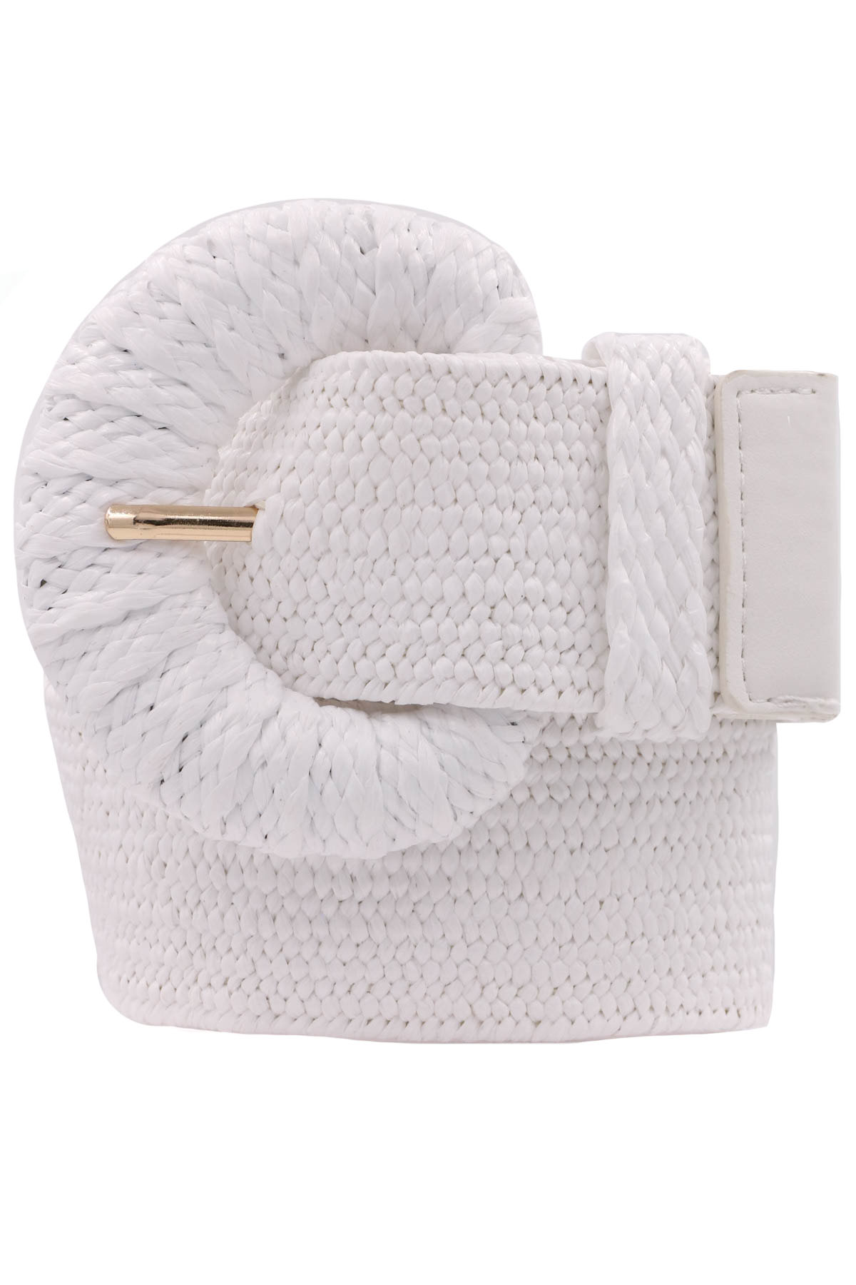 Acrylic Crescent Buckle Basket Weave Strap Belt