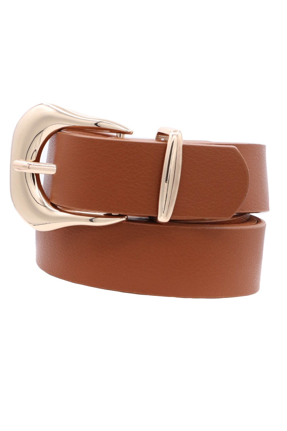 - Sleek dainty belt featuring a fluid U-shaped buckle with double metal loop detailing. A minimalist accessory designed to elevate everyday and dressy looks.