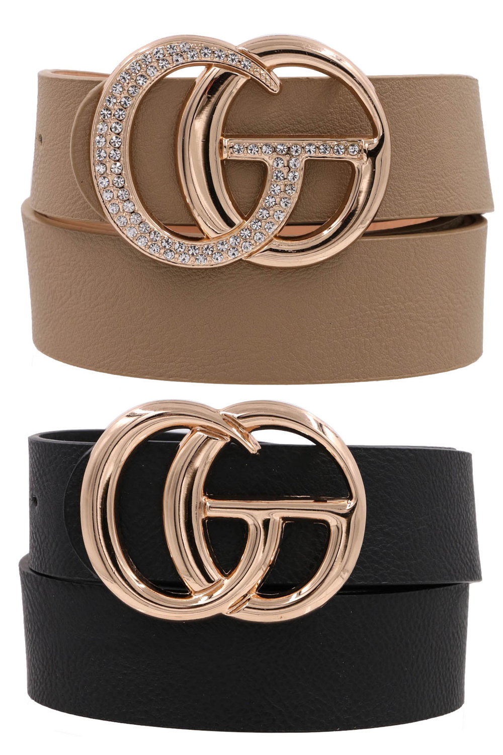 - Rhinestone metal buckle faux leather belt set