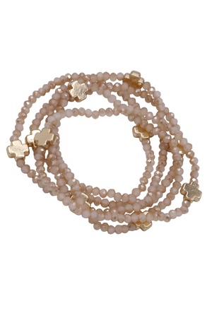 Glass Beaded Cross Elastic Bracelet Set