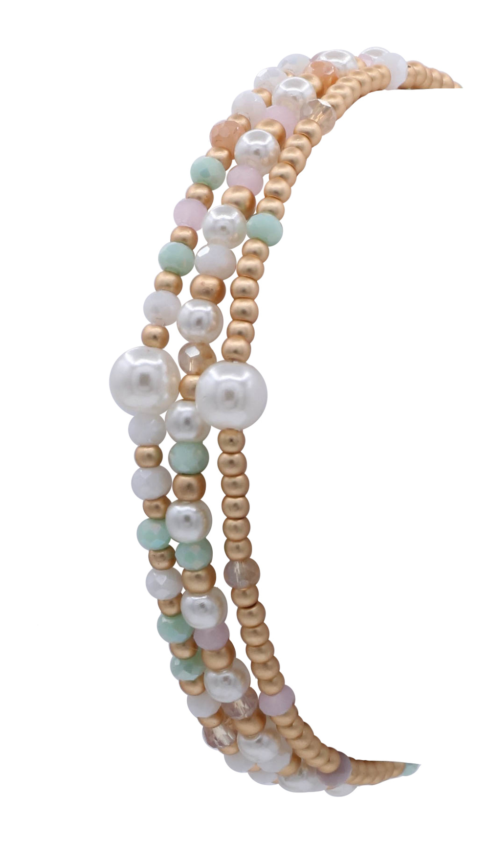Glass Bead & Pave Ball Coil Bracelet