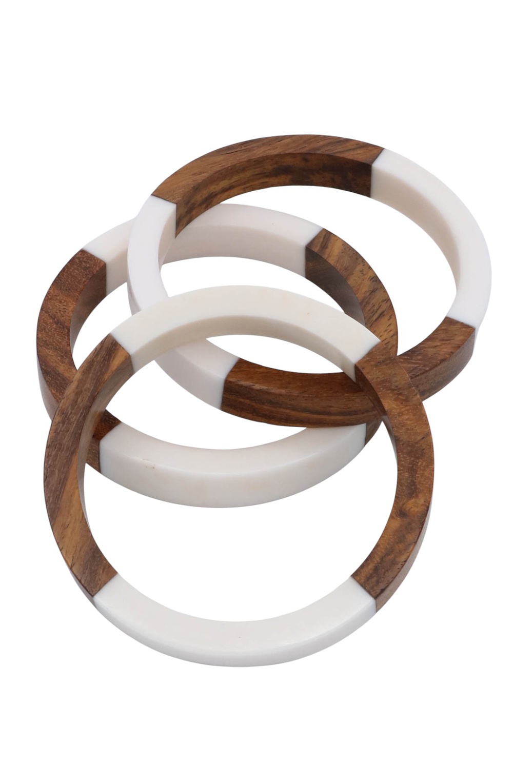 - Set of three wood and acrylic bracelets with a natural, lightweight feel. Easy to wear and perfect for stacking.