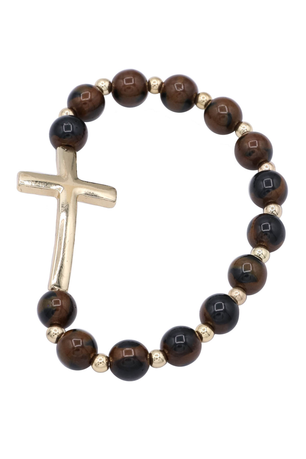 - A stylish stretch bracelet featuring semiprecious beads and a CCB cross charm.
