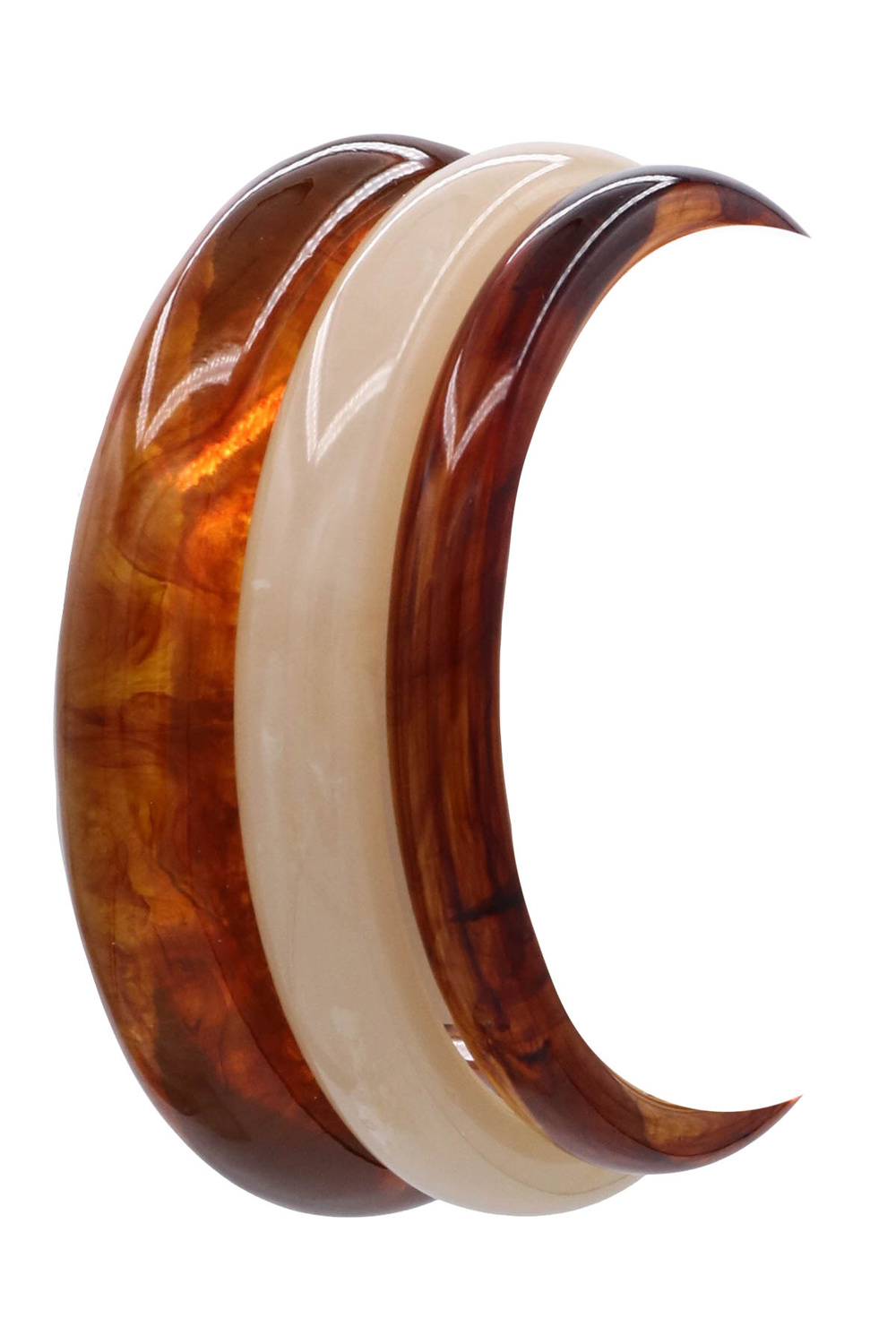 - Chic resin layered bracelet set featuring three stackable bracelets in complementary colors. Modern, fun, and ideal for mixing and matching with other accessories.