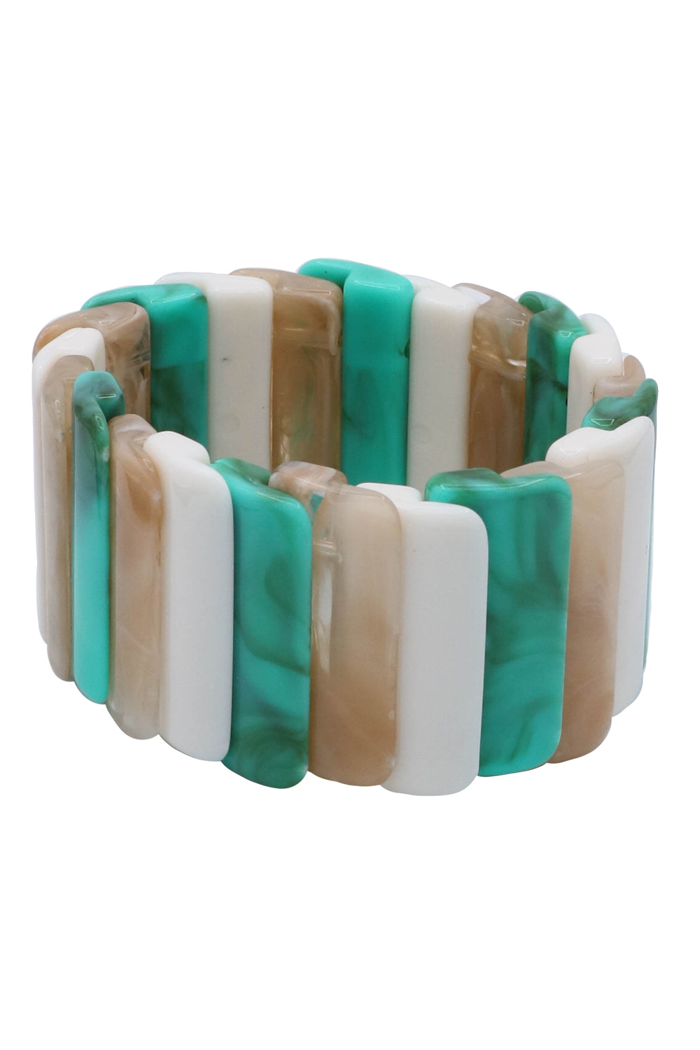 - A bold stretch bracelet crafted from chunky acrylic elements. Lightweight yet eye-catching, perfect for adding a modern statement to any outfit