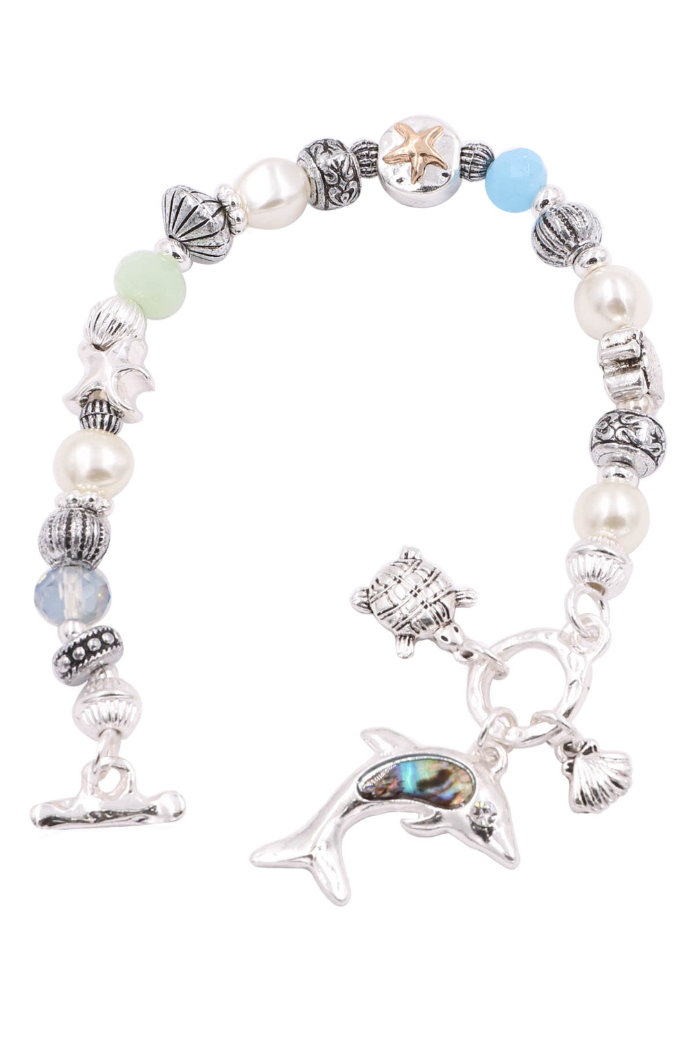 - Cream pearl metal dolphin abalone stretch bracelet