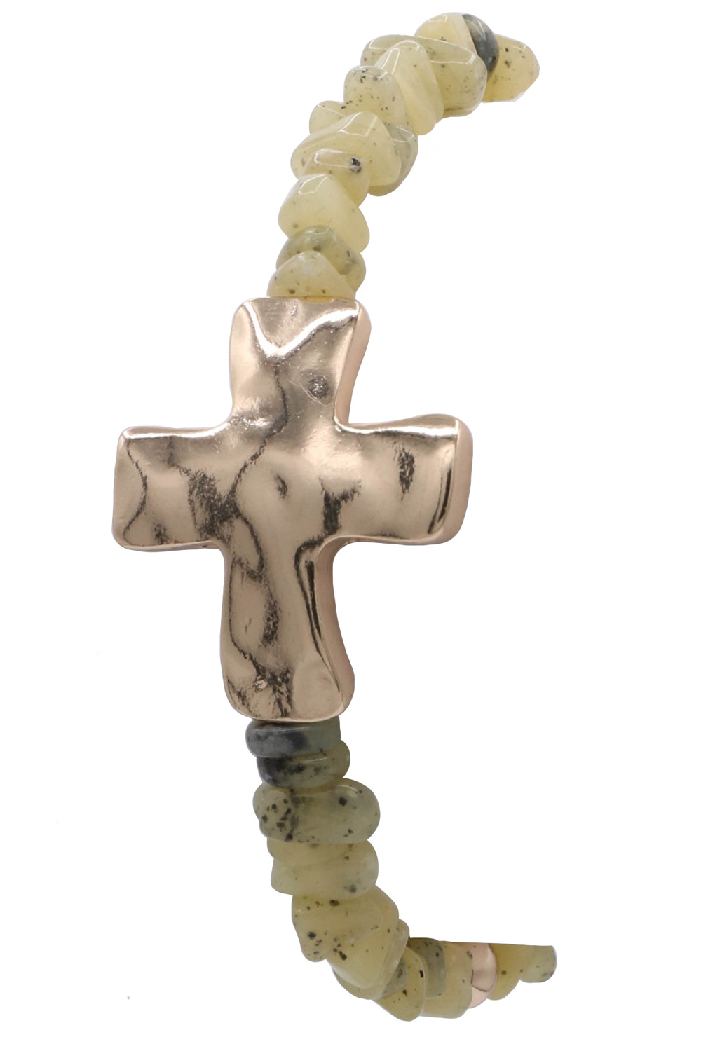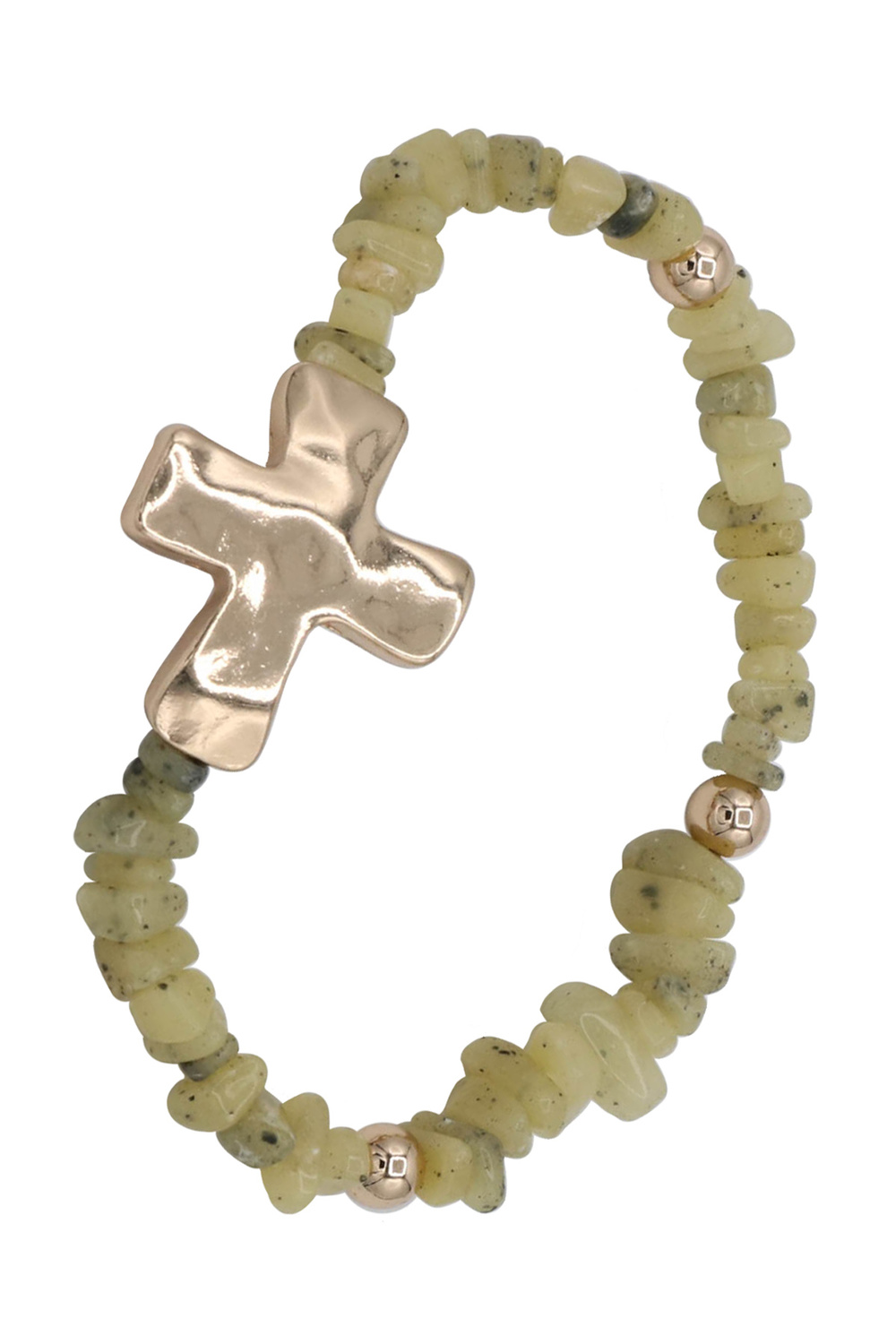 - A versatile bracelet showcasing metal charm cross with bead detail for a refined, symbolic touch. Ideal for stacking or wearing solo.