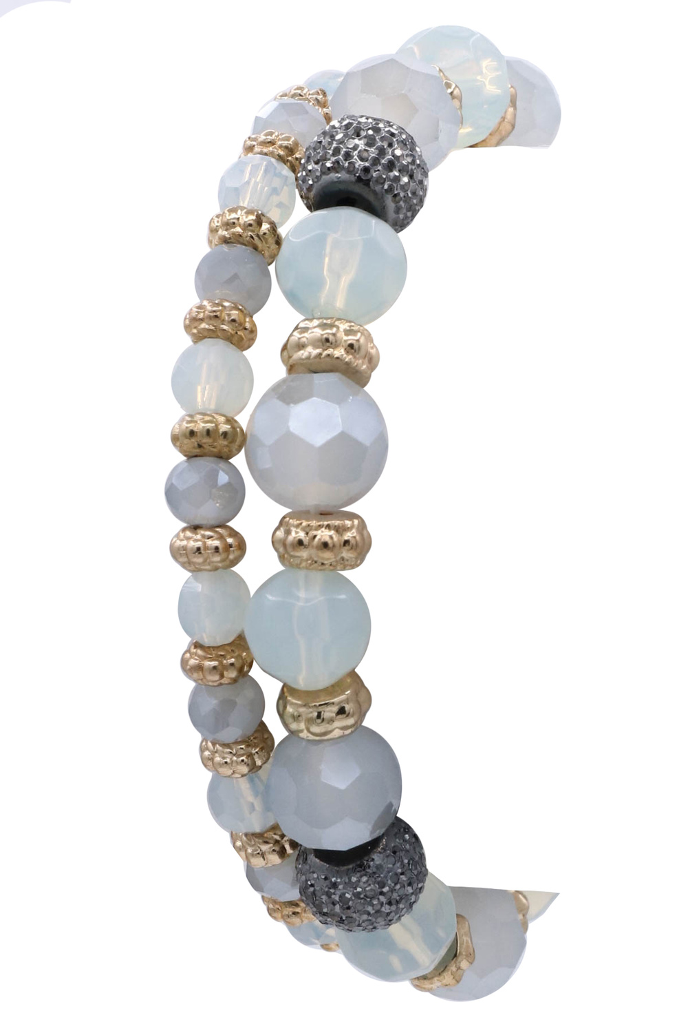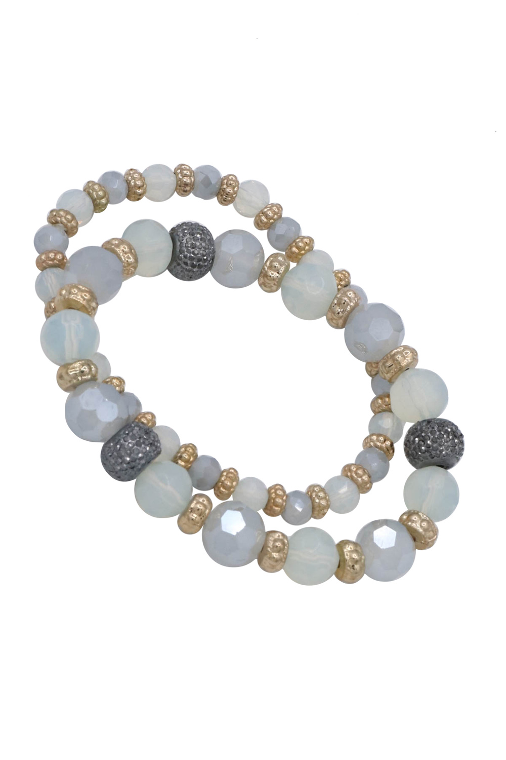 - A stylish bracelet set featuring faceted beads that catch the light with subtle sparkle. Designed with a comfortable stretch fit, perfect for stacking or wearing together for an effortless layered look.