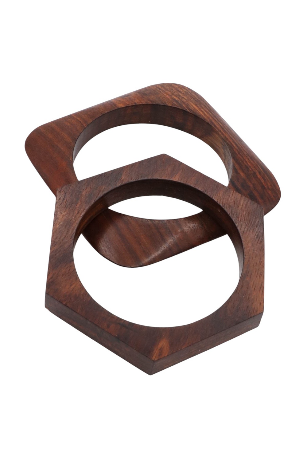- A stylish geometric wood bracelet set showcasing square and hexagon shapes. Adds a natural boho touch and layers beautifully with other bangles.