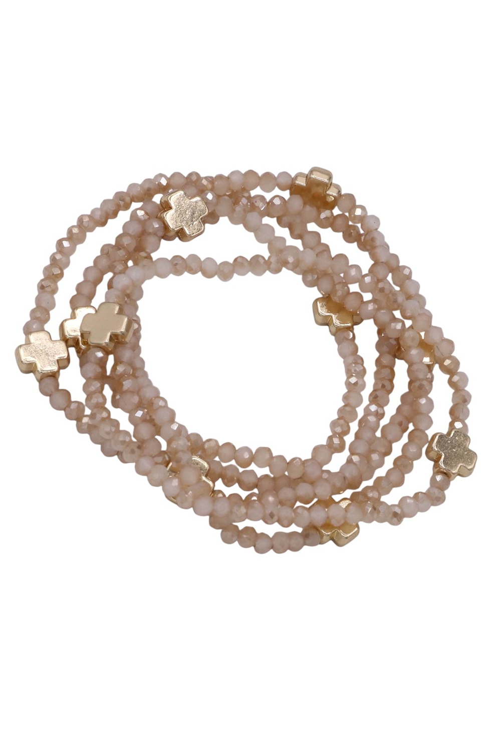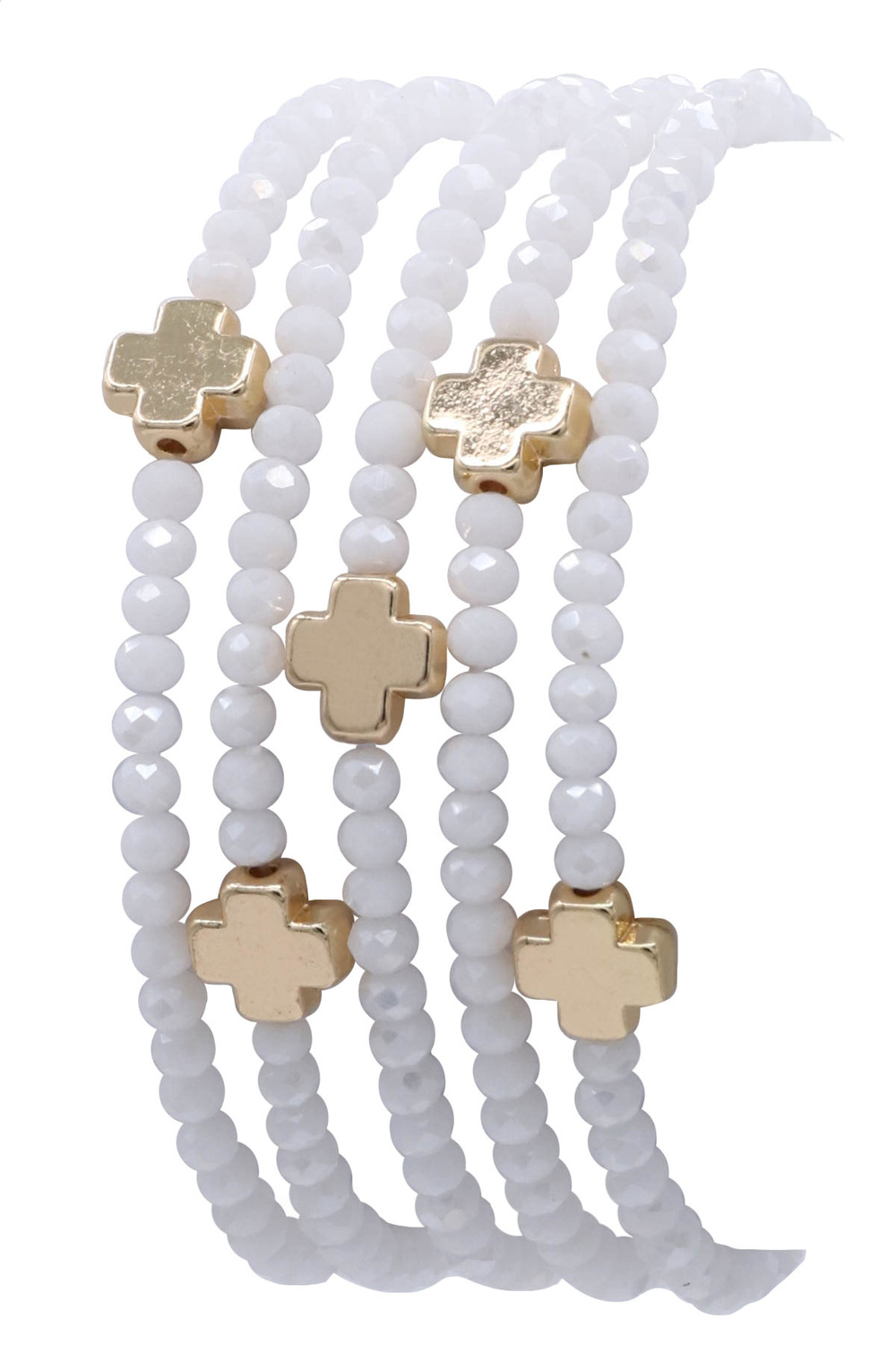 - Chic elastic bracelet set combining glass beads,and cross metal details.