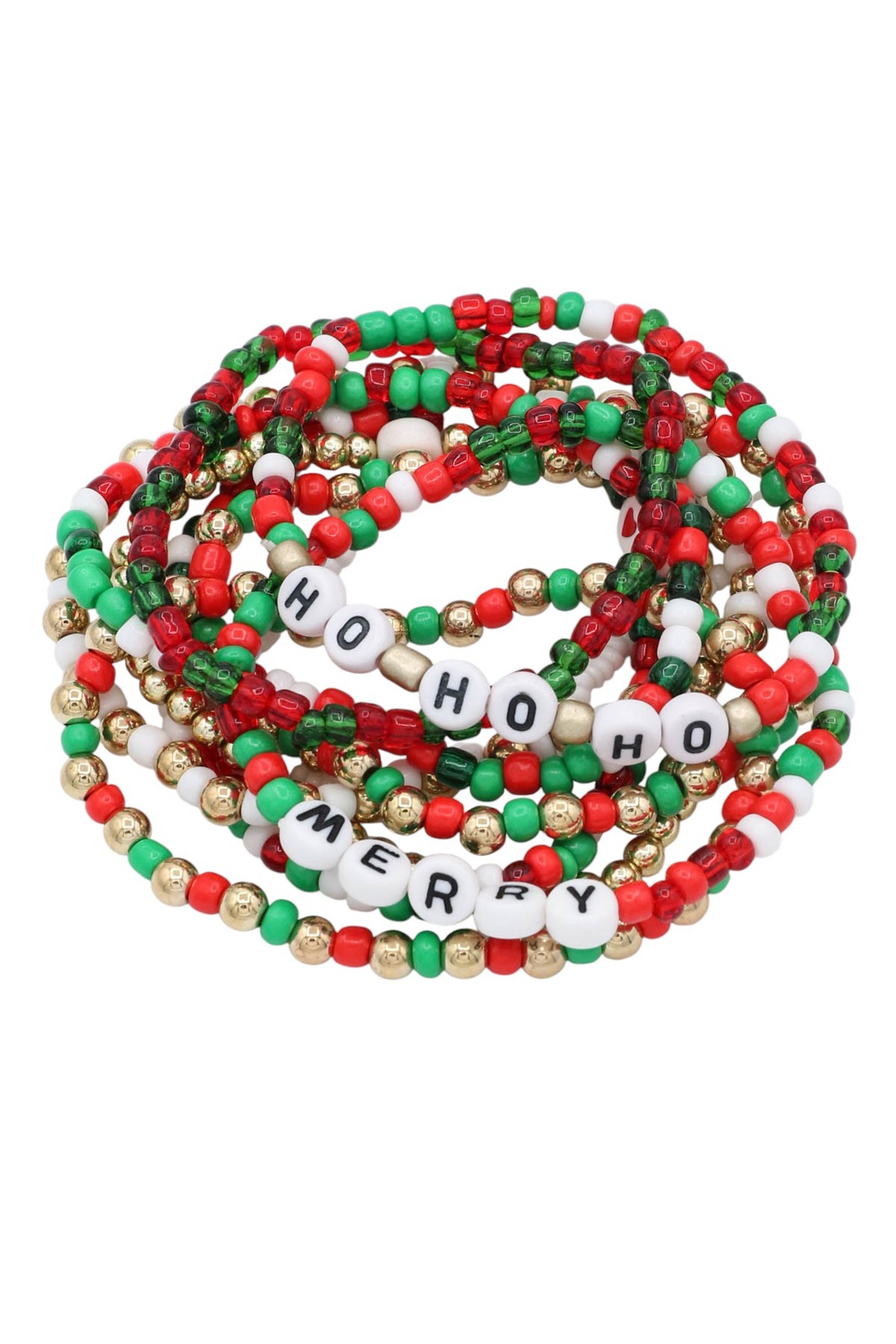 - A festive stack of colorful seed bead elastic bracelets. Mix, match, and layer for a cheerful holiday look.