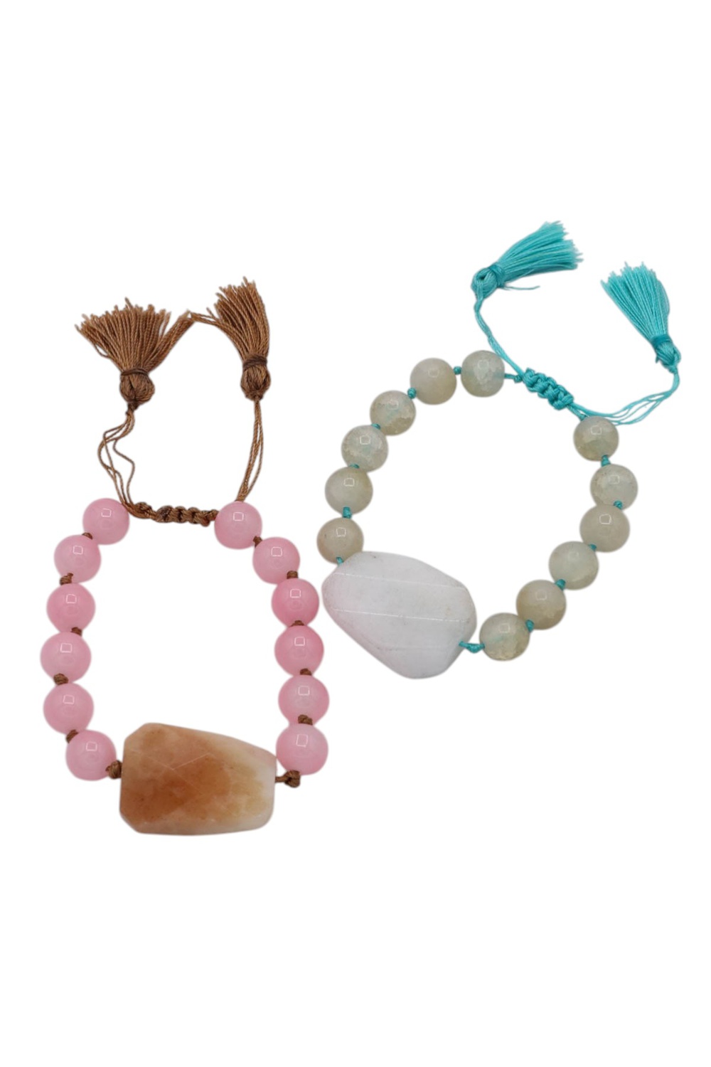 - Boho-inspired bracelet designed with linked beads, natural stone accents, and a soft cotton thread tassel for a stylish, relaxed look.