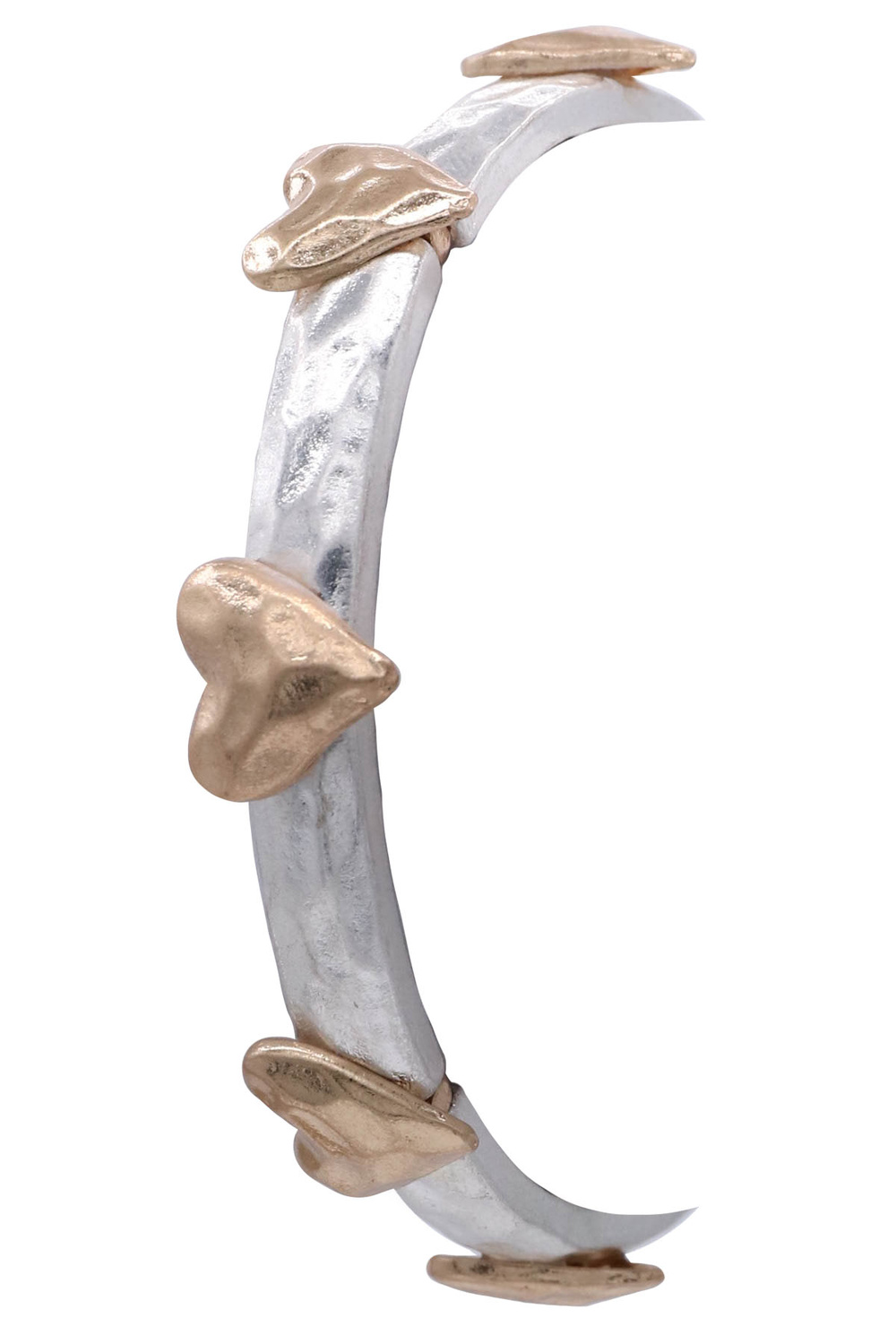 - Crafted with a radiant metallic finish and heart charm detail, this stretch bracelet blends comfort and style. Perfect for stacking or wearing solo for a hint of romance.