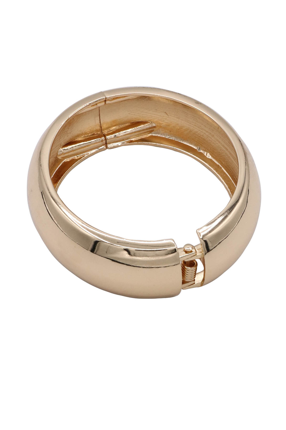 - A sleek metal cuff bangle featuring a secure hinge closure for easy on-and-off wear. Minimalist, modern, and perfect for everyday styling.