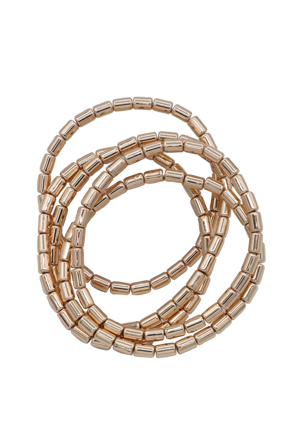 - Chic and versatile, this bracelet set showcases cylinder beads in a stretch design for effortless stacking and everyday wear.