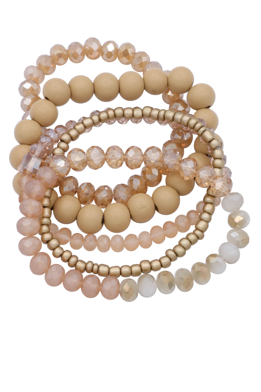 - Chic and earthy, this bracelet set blends faceted beads with wood accents for a stylish mixed-texture look. Perfect for everyday wear or stacking.
