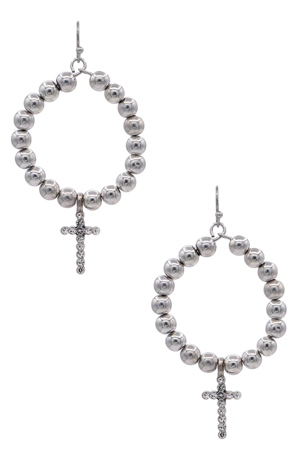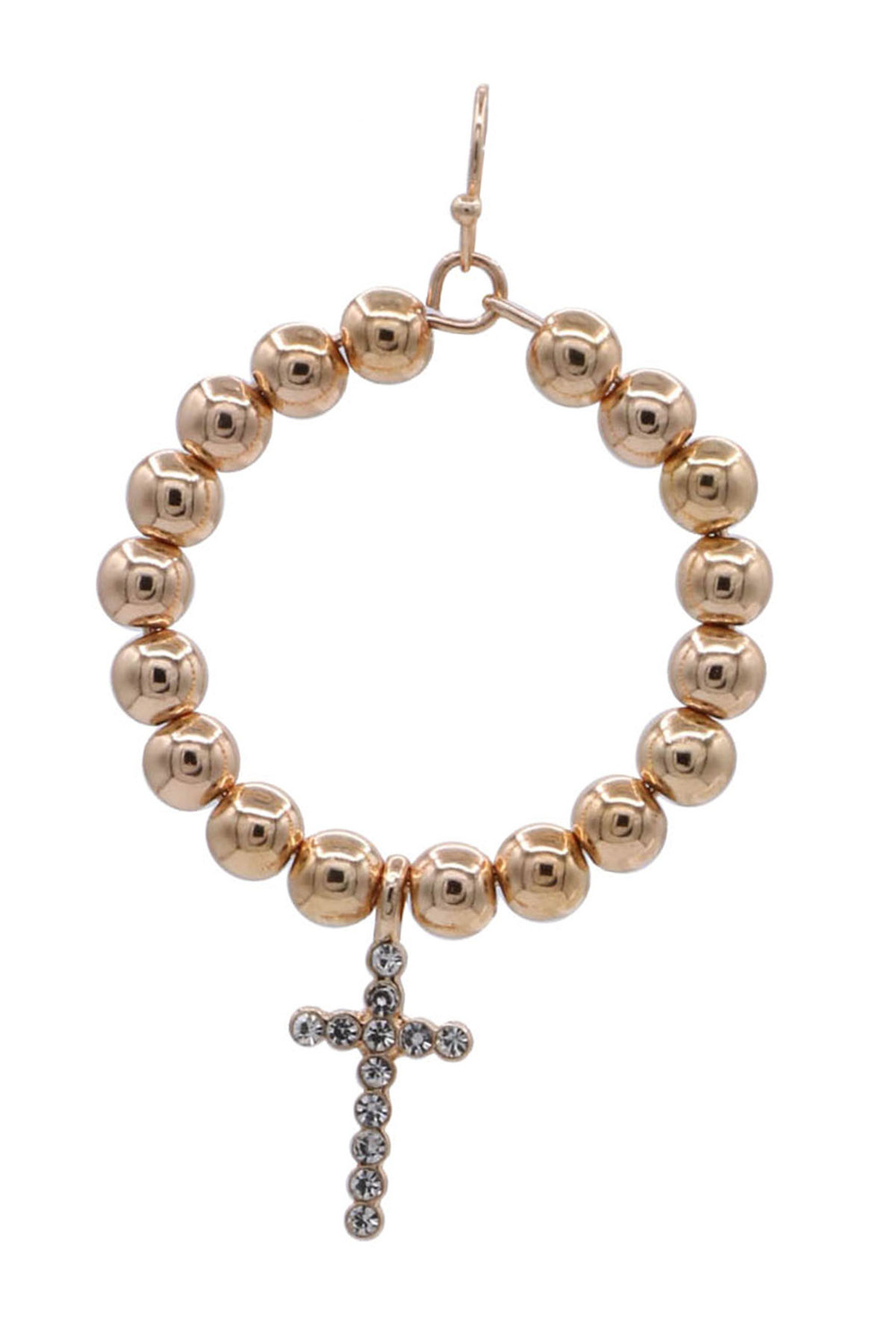 - Charming hoop earrings featuring beads arranged in a classic hoop shape, finished with a sparkling rhinestone-encrusted cross charm. Feminine and eye-catching, these earrings add a playful yet elegant touch to both everyday and dressy looks.