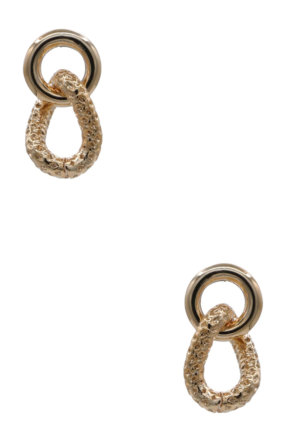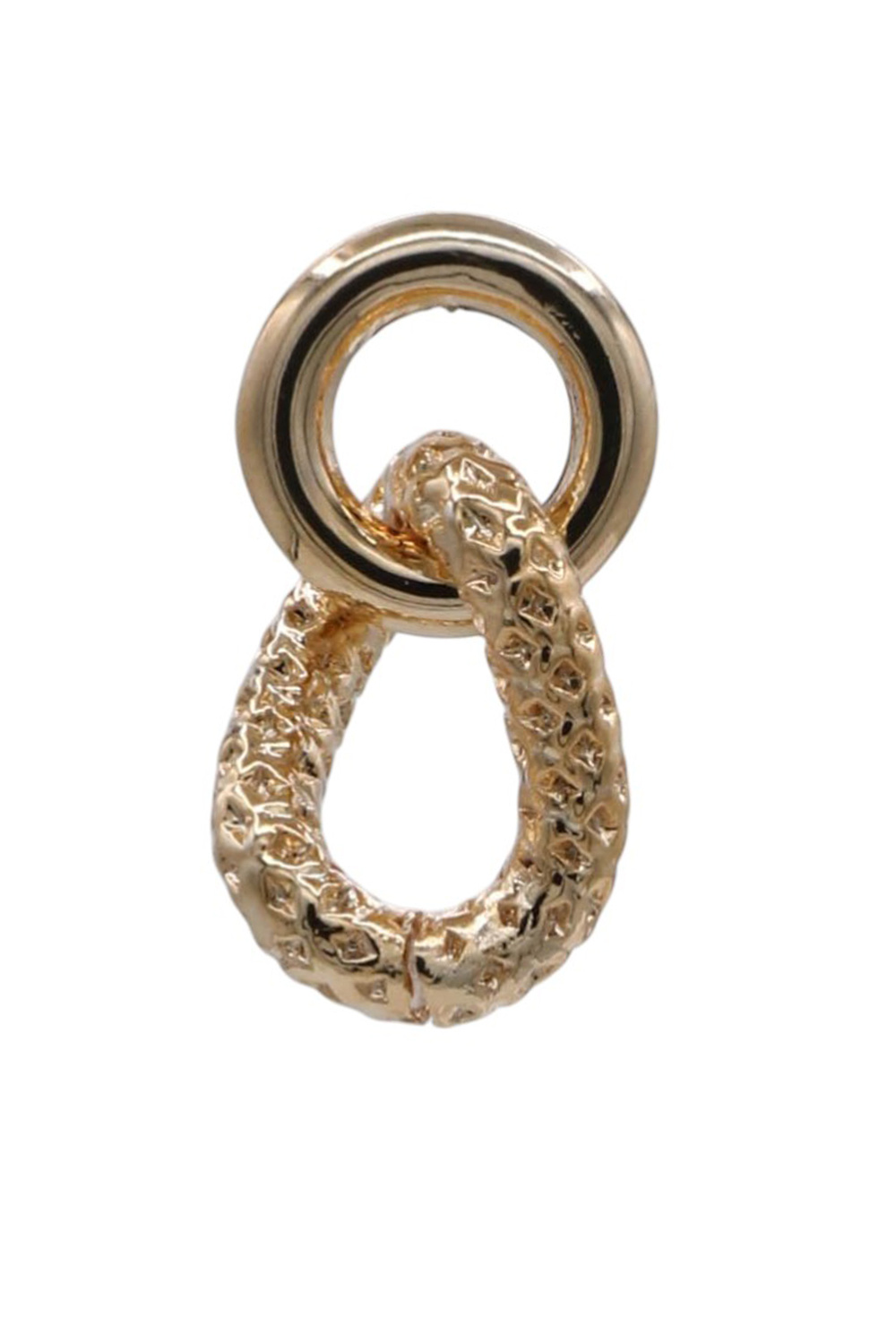 - These exquisite gold stud earrings are a testament to modern elegance, blending classic design with a contemporary edge. Crafted from lustrous gold, they feature a unique textured finish on the teardrop-shaped charm, adding a tactile and visually intriguing dimension. The charm is suspended from a sleek, polished gold hoop, creating a dynamic and sophisticated silhouette. These earrings are versatile enough to elevate any outfit, from casual daytime wear to glamorous evening ensembles.