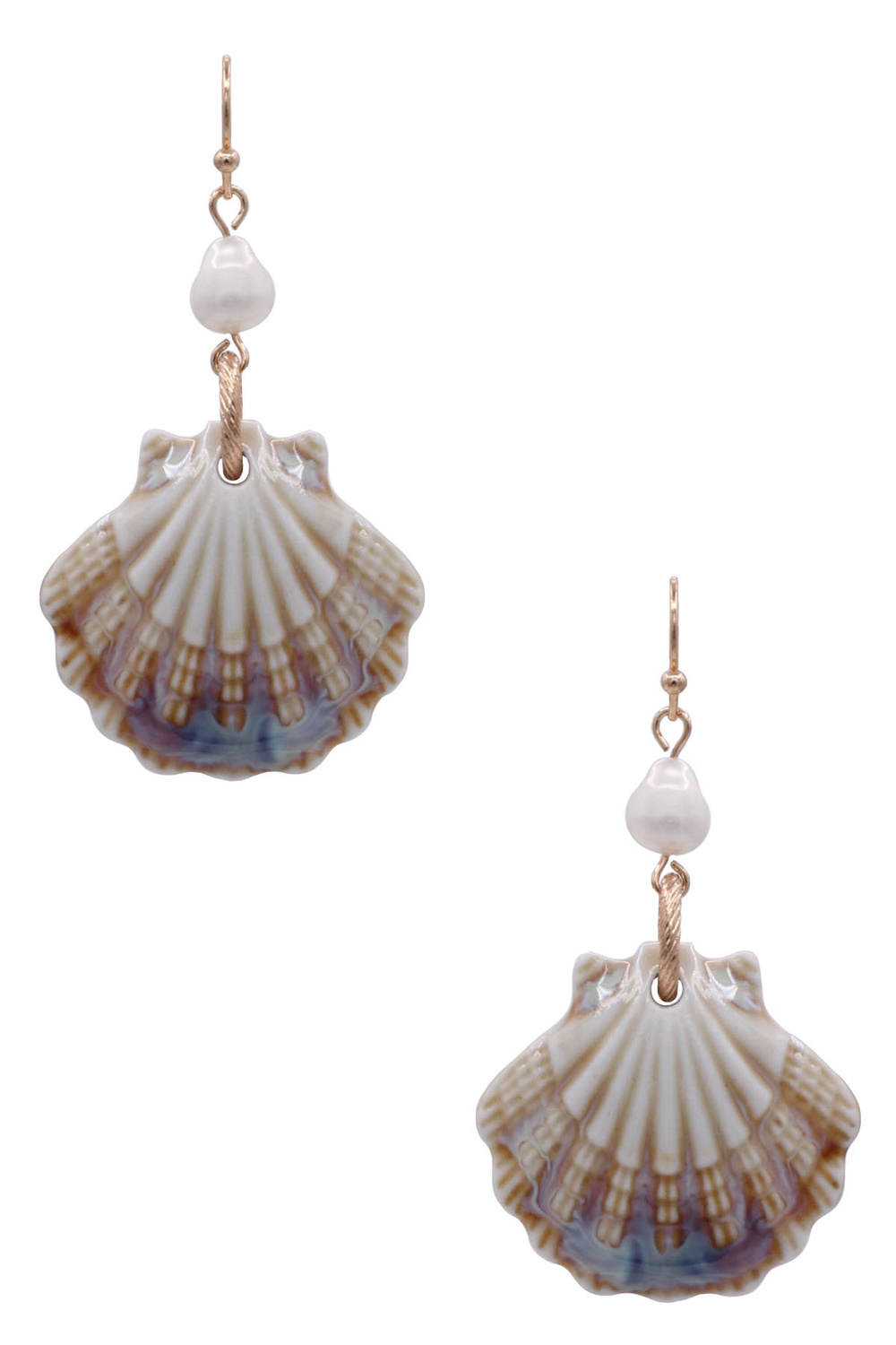 - Charming dangle earrings featuring ceramic shell accents for a soft, coastal-inspired look. Lightweight and playful, these earrings add a fresh, beachy touch to both everyday and summer outfits.