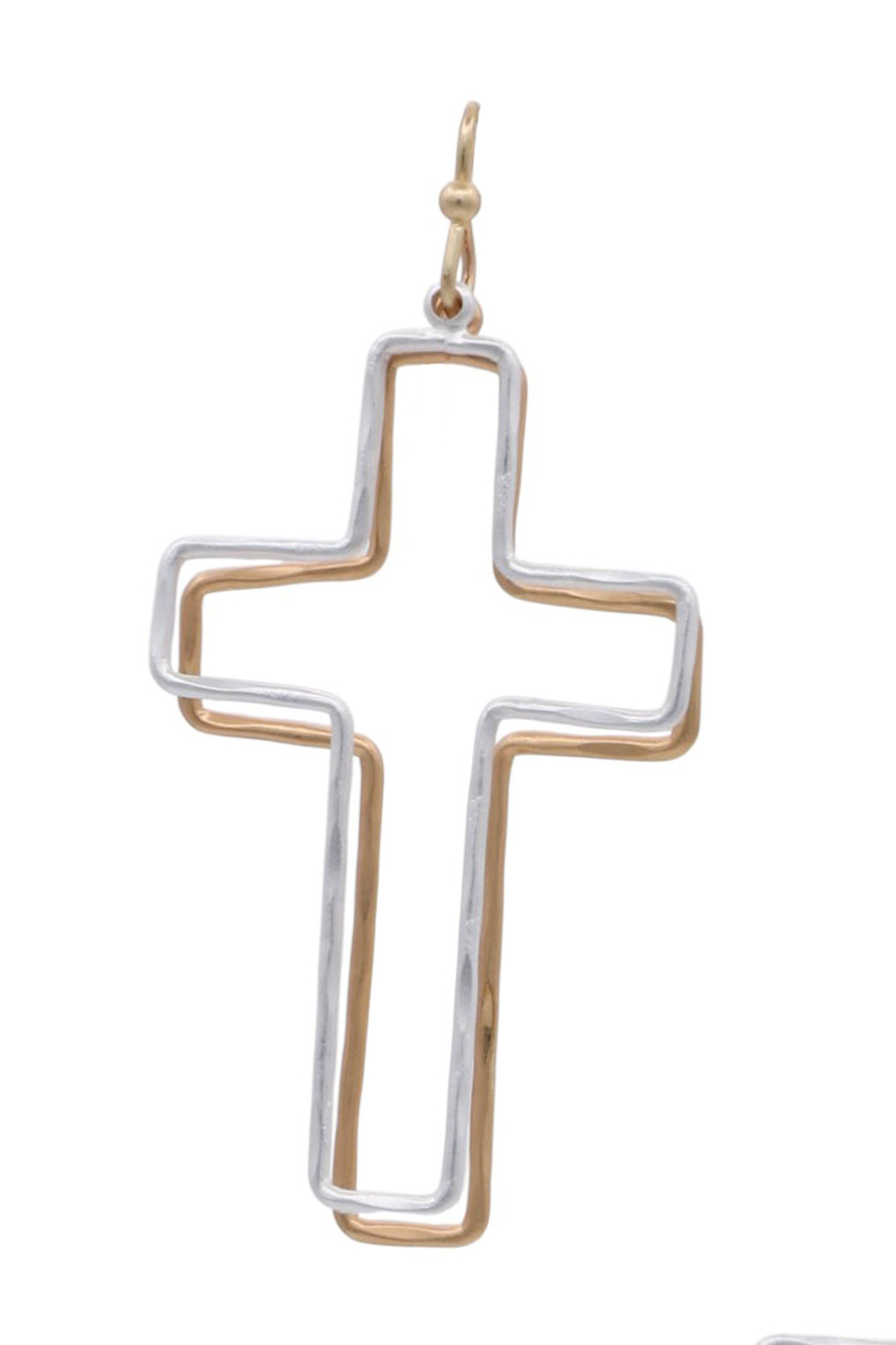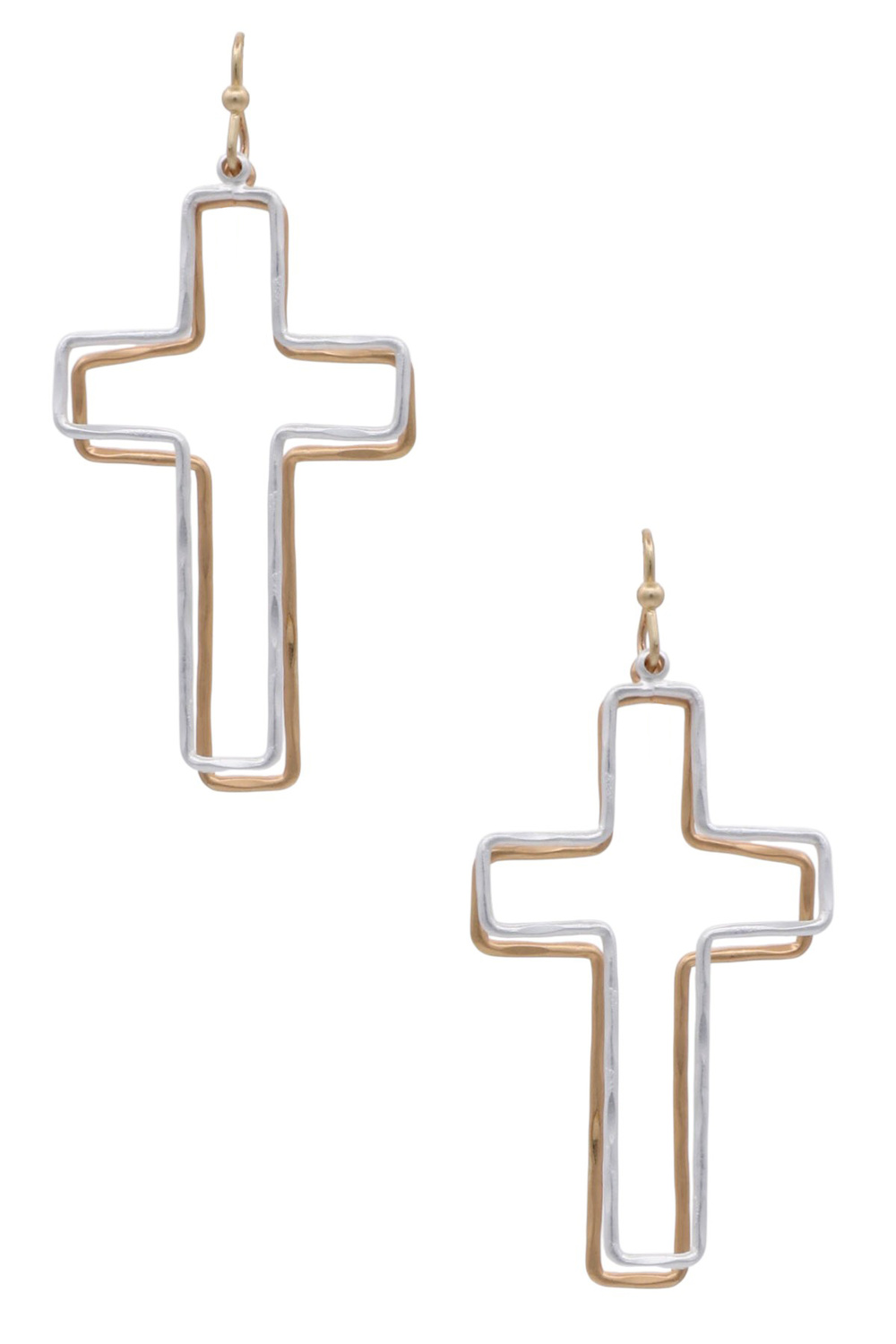 - These striking dual-toned cross drop earrings are a captivating fusion of modern design and timeless symbolism. Chic and meaningful, these dual-tone metal earrings showcase a layered cross design for a bold yet elegant look. Perfect for everyday wear or statement styling.