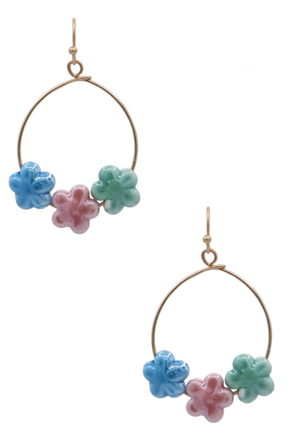 - Charming drop earrings featuring vibrant ceramic flowers for a playful and feminine look. Lightweight and eye-catching, these earrings add a fresh pop of color and charm to both everyday and dressy outfits.