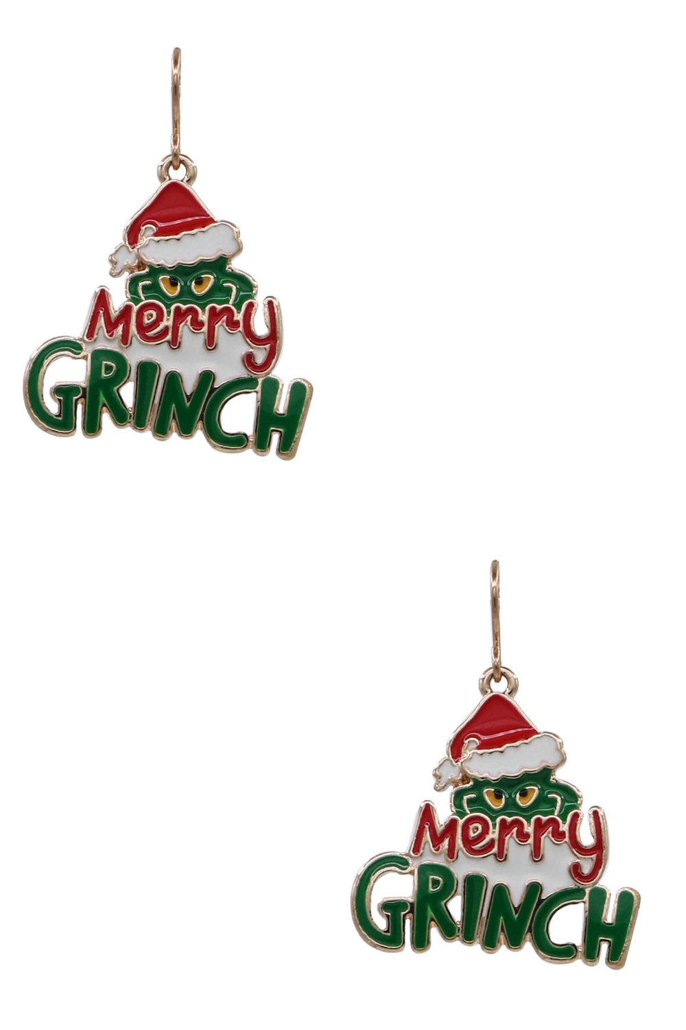 - Bright and cheerful earrings with a color-coated Grinch motif and Merry Christmas flair. A whimsical accessory for the holiday season.