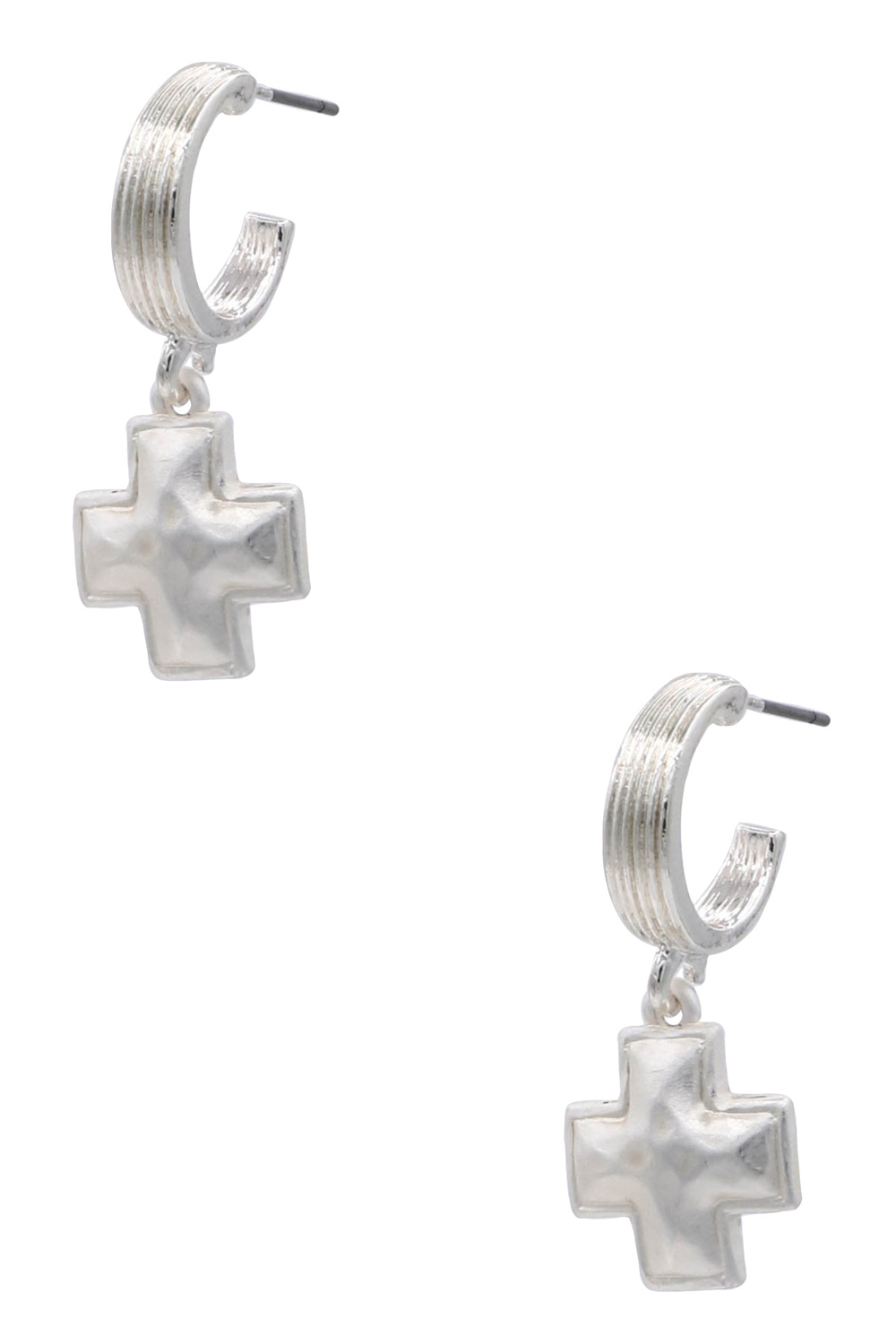 - Classic hoop earrings accented with a sleek metal cross charm. A timeless design that blends everyday style.