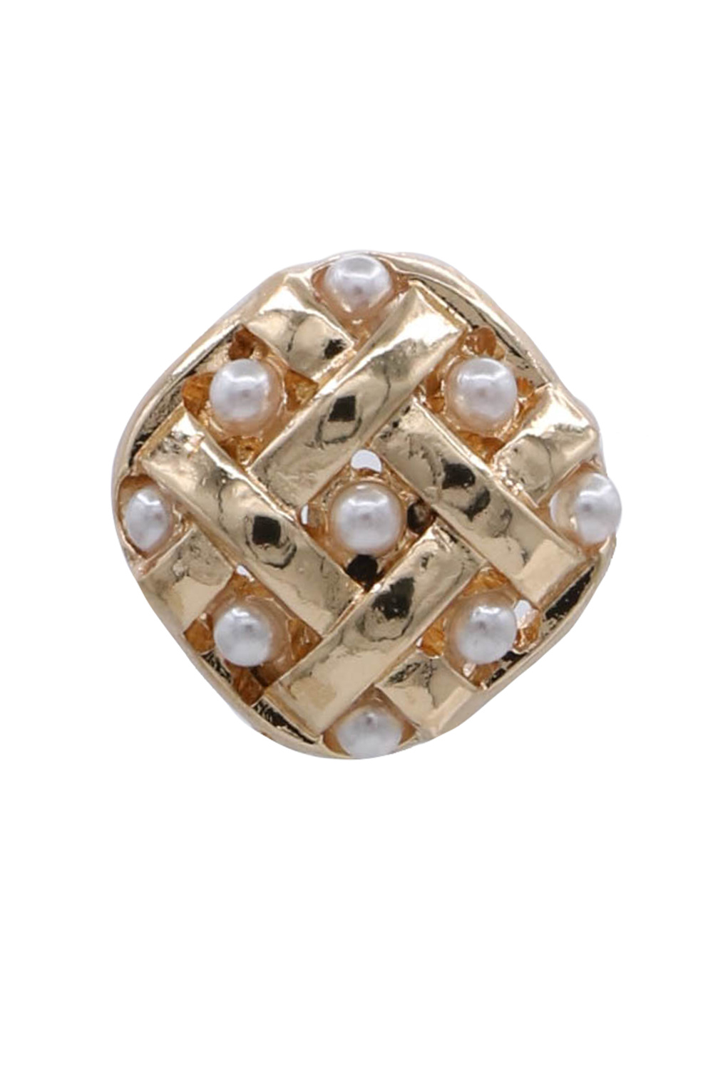 - Square post earrings accented with cream pearls in a pavé setting. Elegant and lightweight for everyday wear.