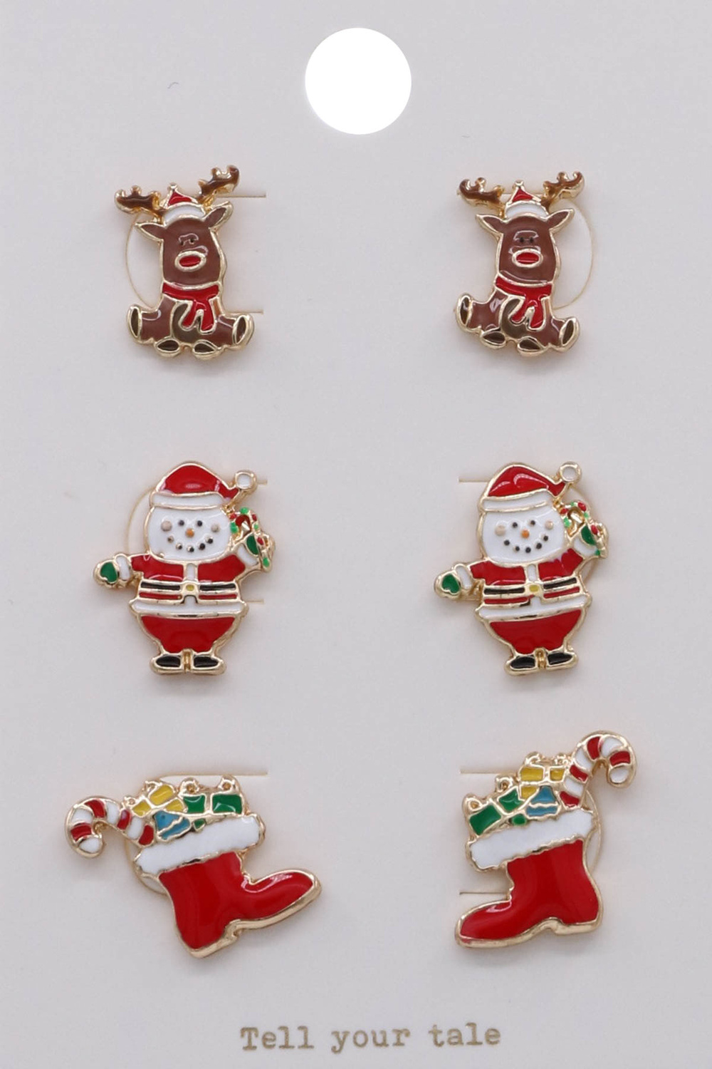 - Festive assorted post earrings featuring colorful epoxy Christmas designs. Perfect for adding joyful holiday cheer all season long.