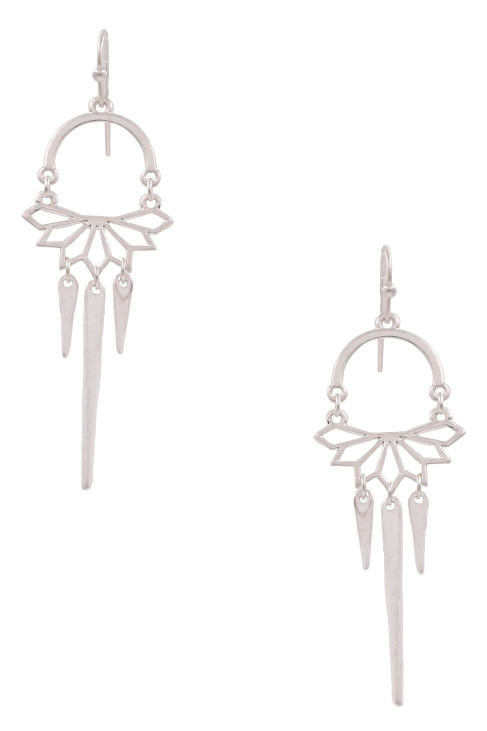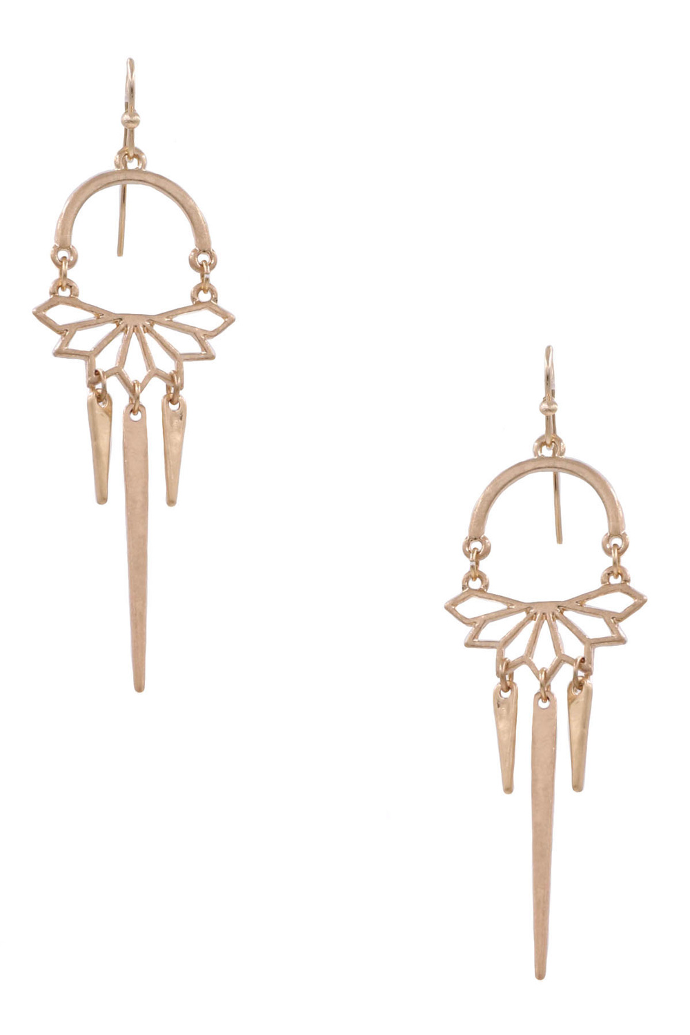 - Metal floral cut out tassel spike drop earrings