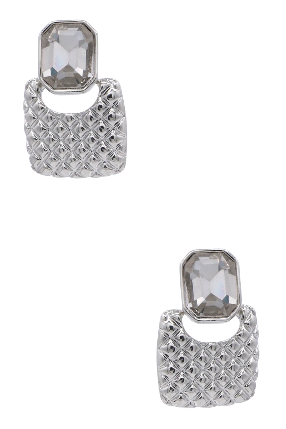 - Beautiful post earrings with sparkling glass jewels and detailed metal texture. Lightweight and versatile for day or evening wear.
