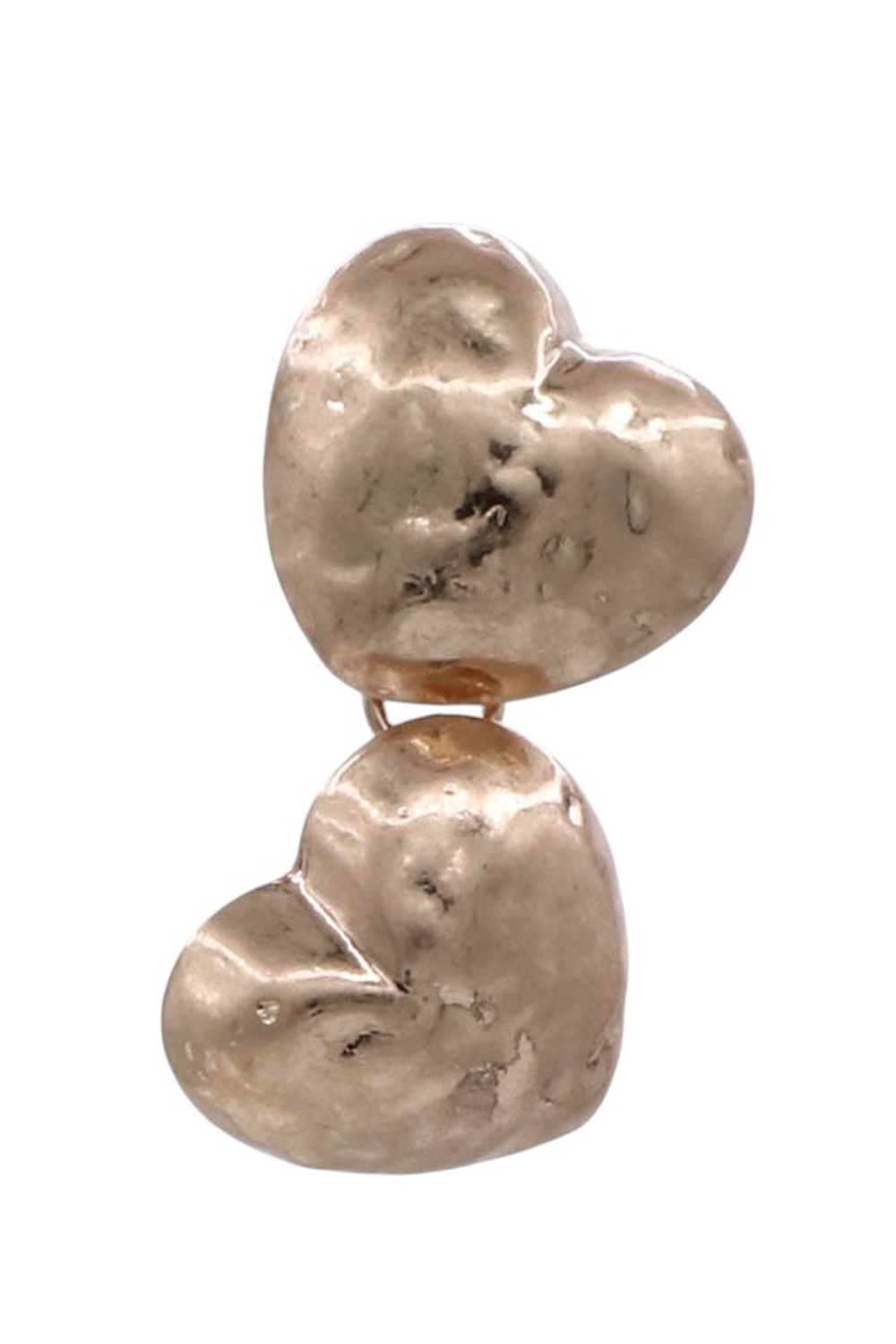- Elegant mid-drop earrings with dual hammered hearts for a playful yet refined look. Ideal for layering with other jewelry or wearing as a statement piece.