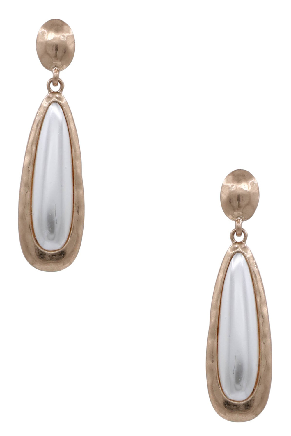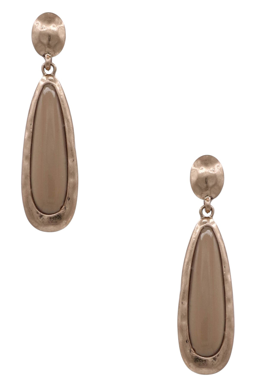 - Skinny teardrop dangle earrings featuring acrylic stone accents set in metal for a sleek, modern look.