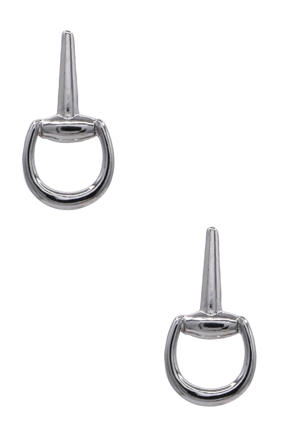 - Elegant post earrings featuring a sleek horse bit-inspired design in polished metal. Timeless and versatile, these equestrian-style earrings add a refined touch to both everyday and dressy looks.