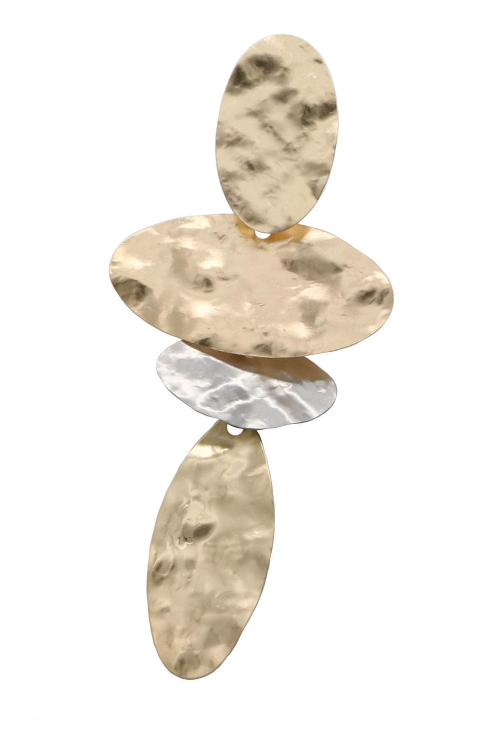 - Stylish dangle earrings featuring layered oval shapes with a hammered texture for added dimension and shine. Lightweight and modern, these earrings bring effortless movement and a bold yet elegant touch to any look.