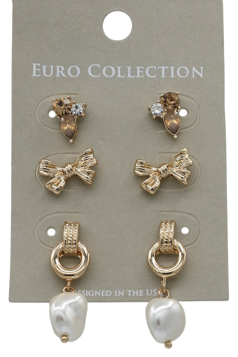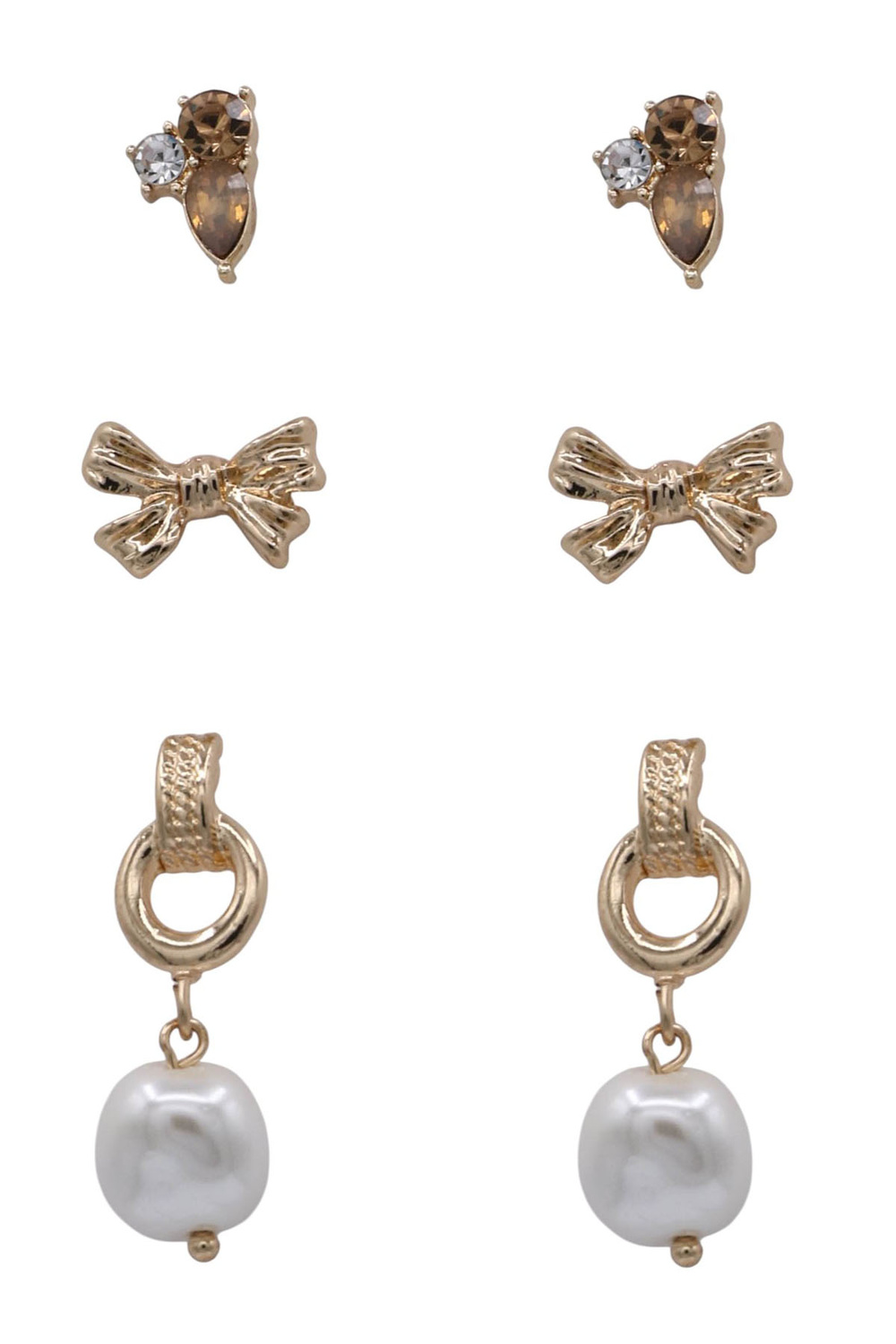 - A timeless mix of metal and pearl stud earrings in assorted designs. Perfect for everyday wear, this set offers effortless versatility and elegance.
