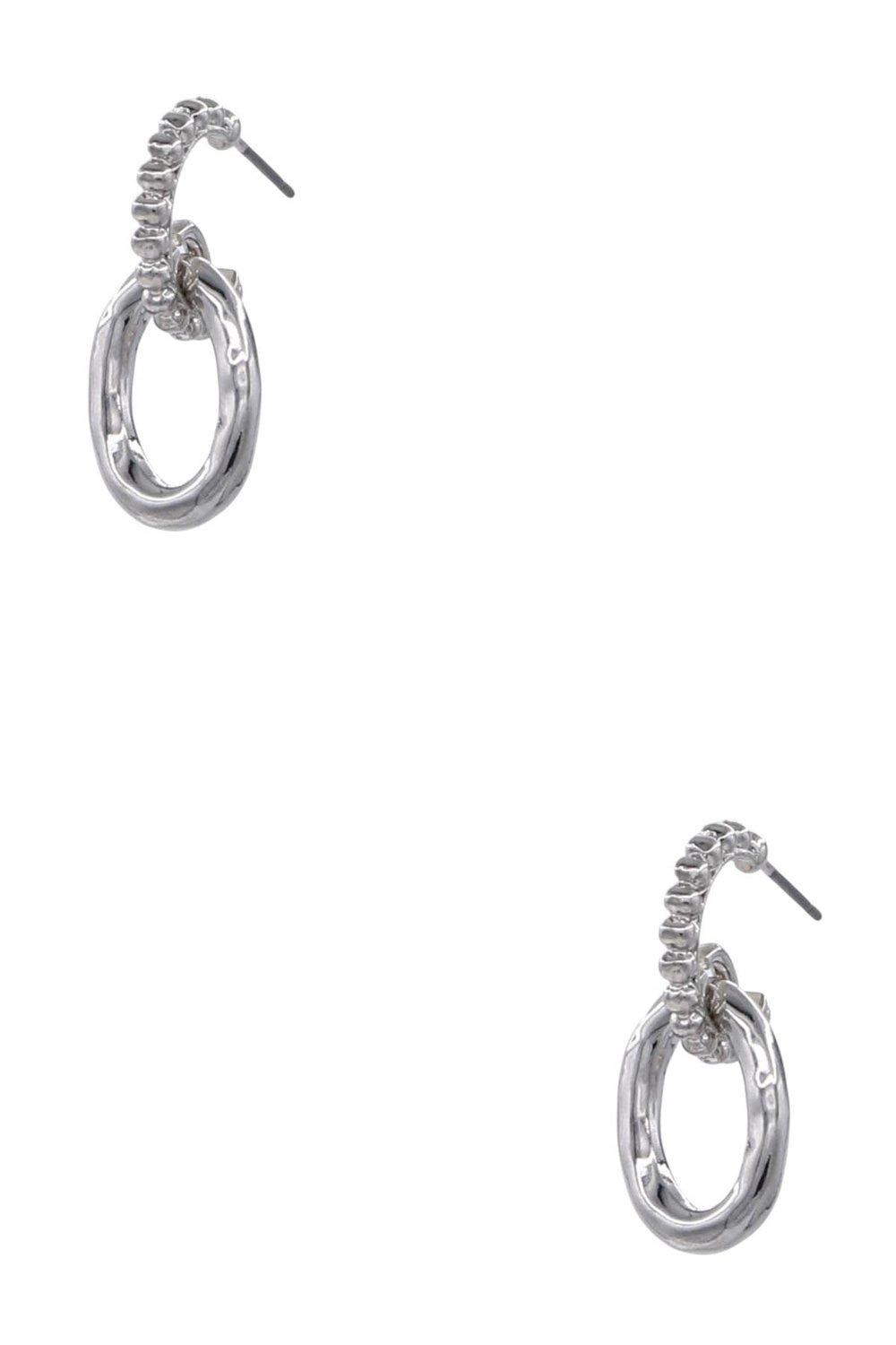 - Elegant huggie hoops featuring sleek oval dangles in polished metal. A perfect blend of classic charm and modern style.