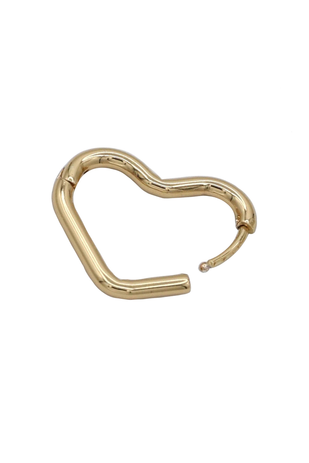 - These are a pair of delightful heart-shaped hoop earrings, crafted in a lustrous gold tone. Their minimalist design exudes a modern and chic vibe, making them a versatile accessory for any outfit.